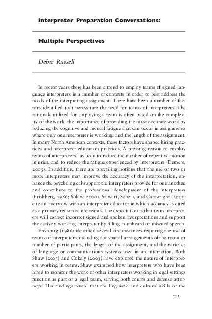 (PDF) Interpreter Preparation Conversations: Multiple Perspectives