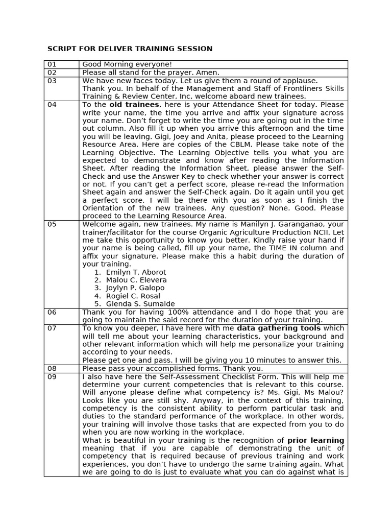 FACILITATE LEARNING SESSION Script | PDF | Learning | Behavior Modification