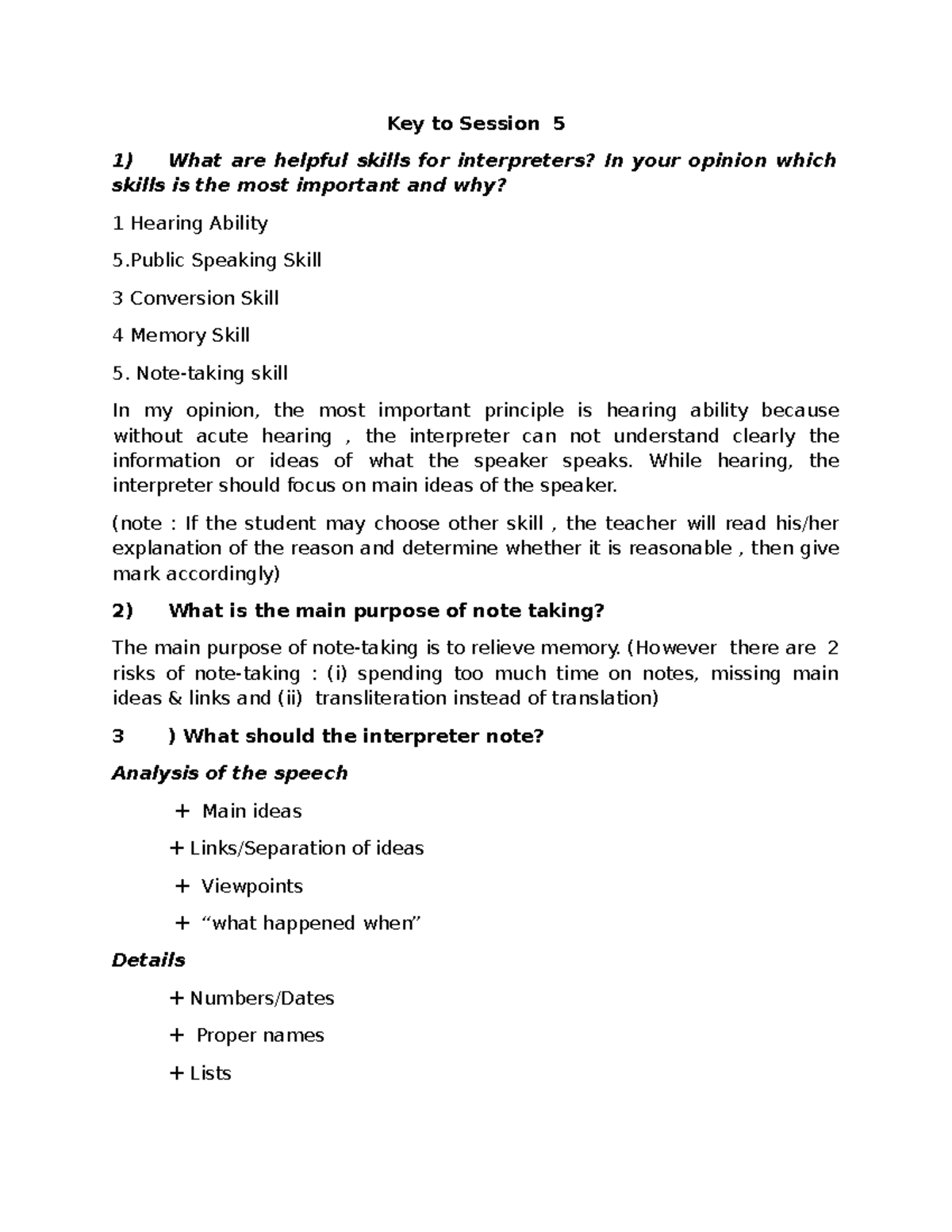 Key to Session 5: Essential Skills for Interpreters and Note-Taking ...