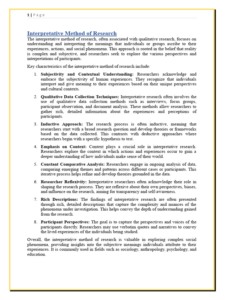 Interpretative Method of Research | PDF | Methodology | Qualitative ...