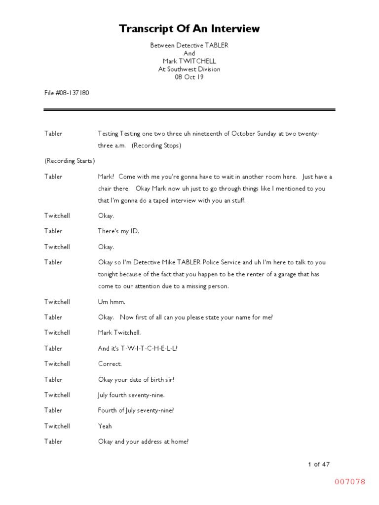 Twitchell Police Interview Transcript 08Oct19 | Alberta | Business
