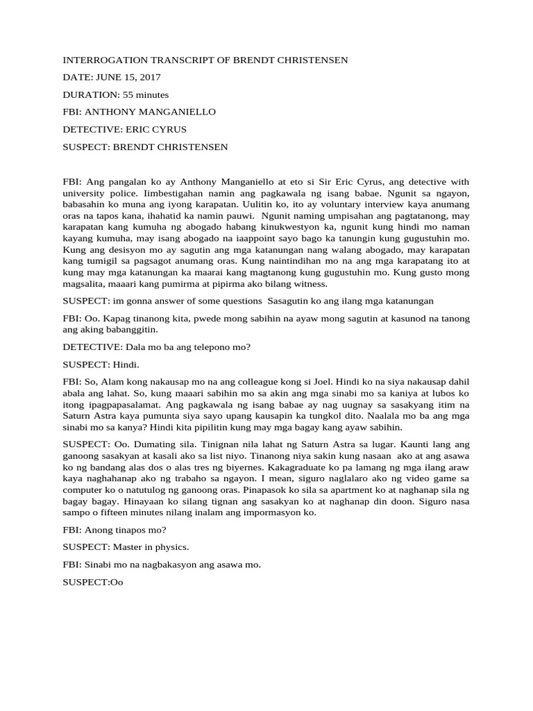 Interrogation Transcript of Brendt Christensen | PDF