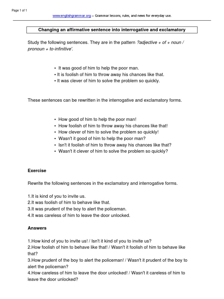 Changing Affirmative Sentence Interrogative Exclamatory | PDF ...