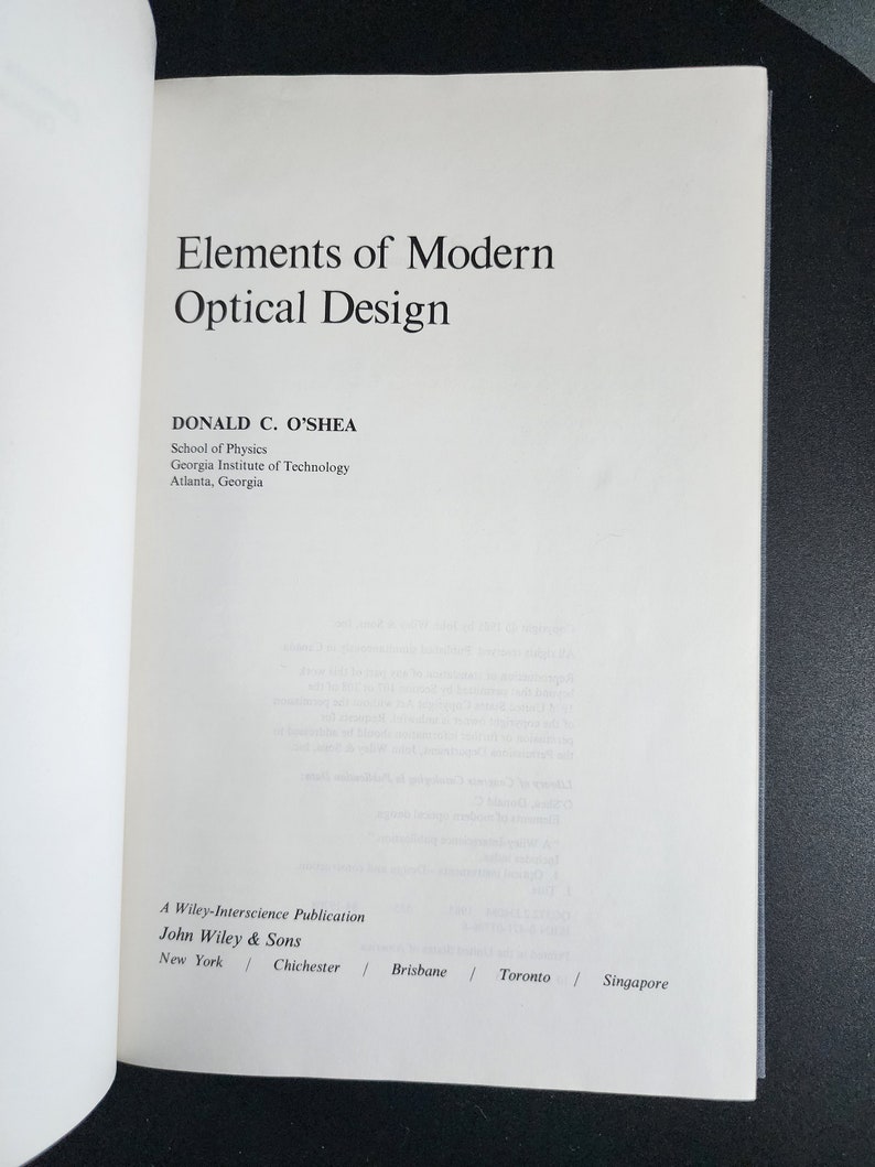 Optical Design Book | 1985 First Edition by Donald C. O'shea - Etsy