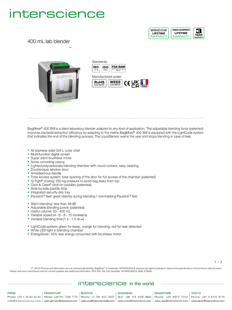 Interscience Bagmixer400sw FT en | PDF