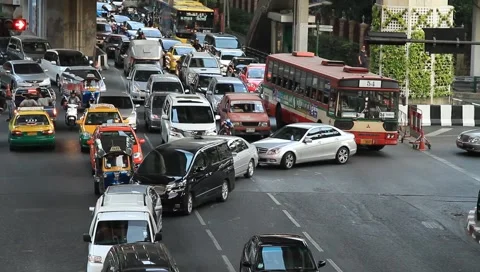 Car, Bus, and motorcycle stuck in a traffic jam at the intersection in ...