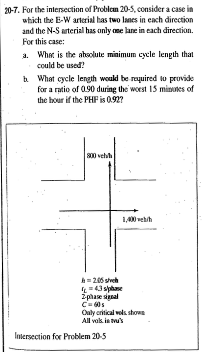 Solved 20-7. For the intersection of Problem 20−5, consider | Chegg.com