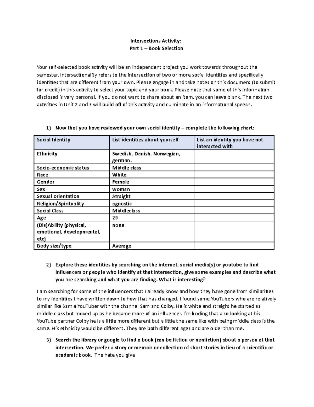 Intersectionality Activity.docx - Intersectionality Activity This ...