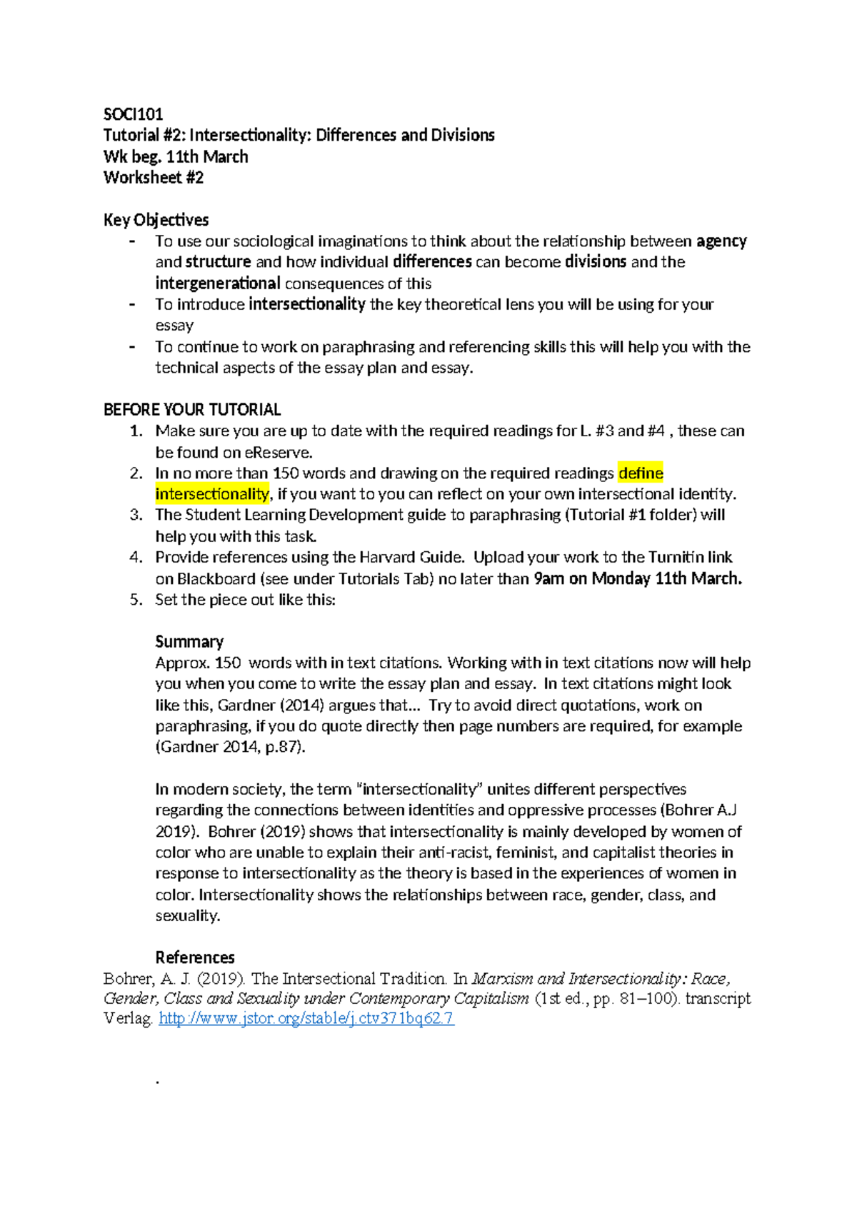 Worksheet 2 soci - SOCI Tutorial #2: Intersectionality: Differences and ...
