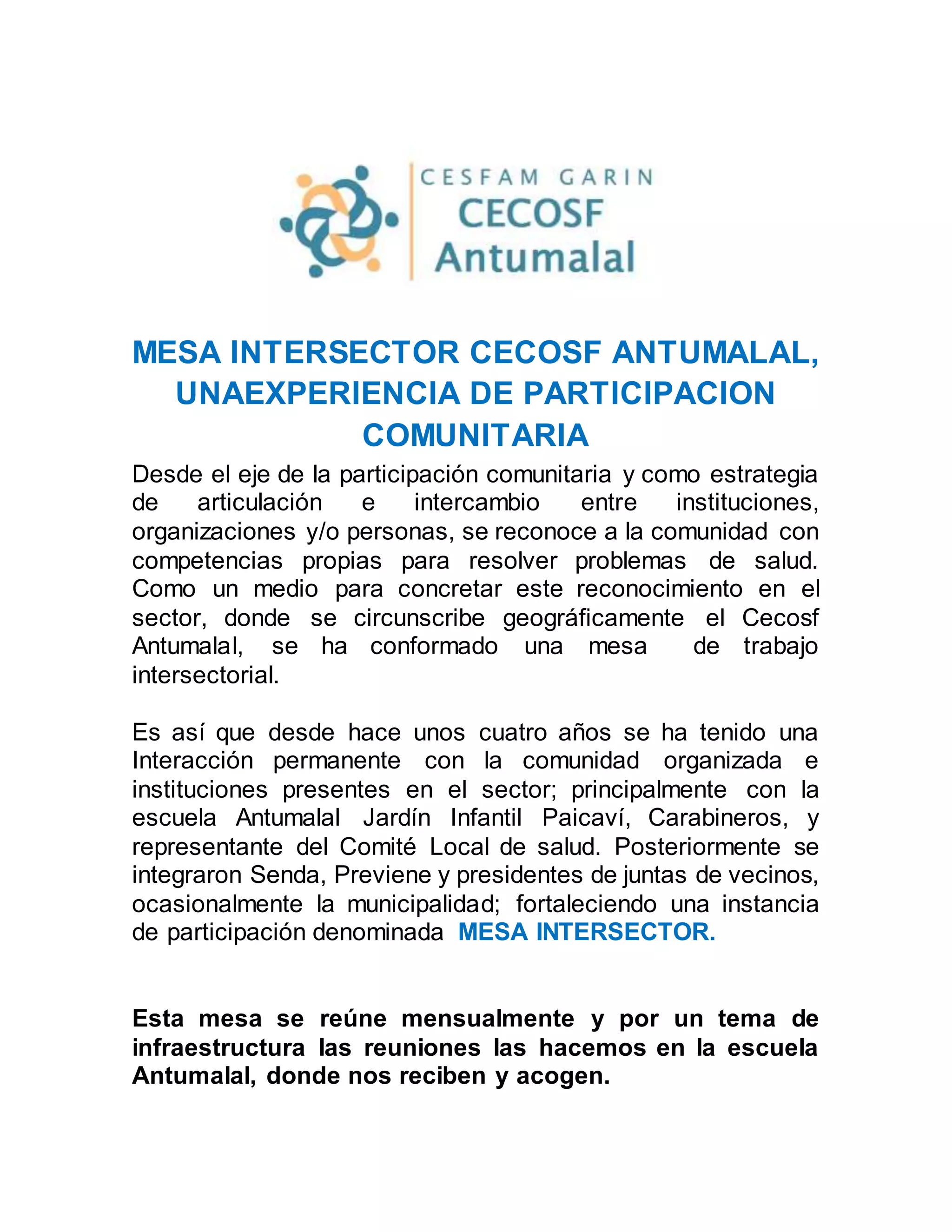 Mesa intersector cecosf antumalal quinta normal | DOCX