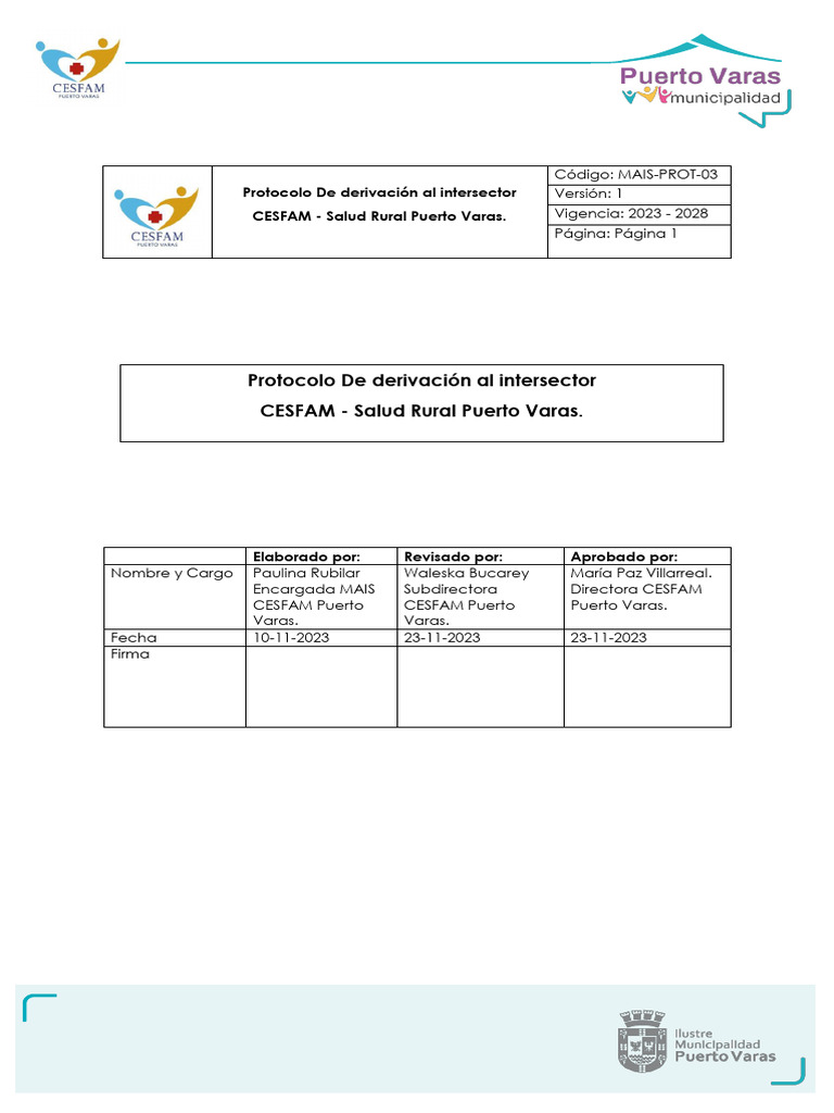 Protocolo de Derivación Al Intersector CESFAM - Salud Rural | PDF ...