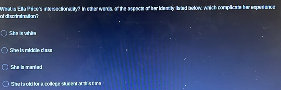 Solved: What is Ella Price's intersectionality? In other words, of the ...