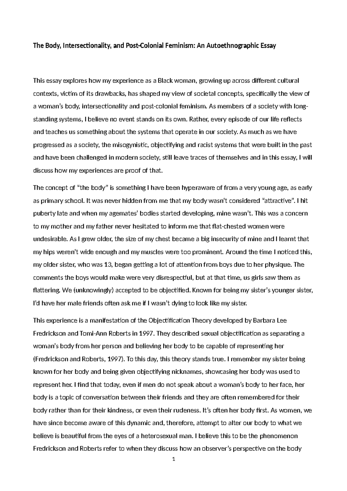 Whitney - The Body, Intersectionality, and Feminism: An ...