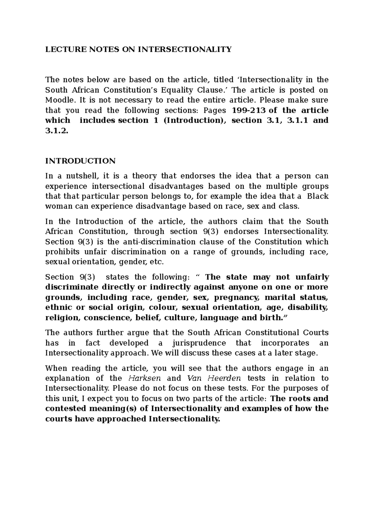 LECTURE NOTES ON INTERSECTIONALITY (Course Code: LEC101) - Studocu