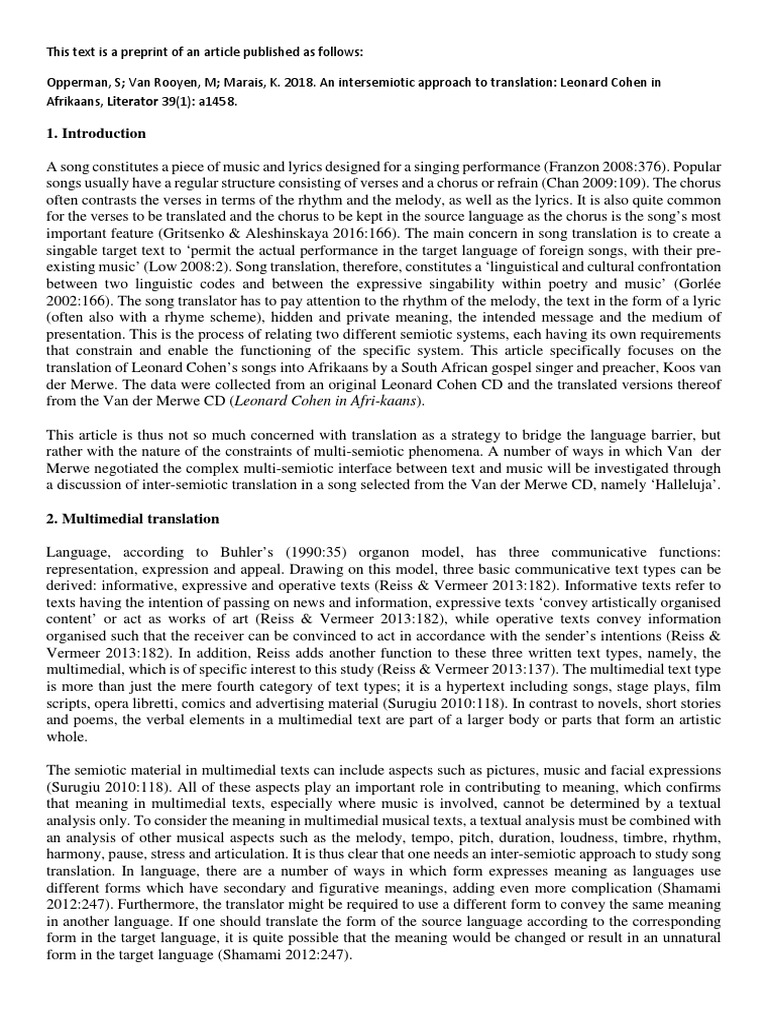 (PDF) Towards a Model of Intersemiotic Translation