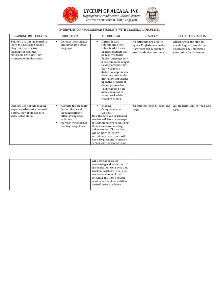 INTERVENTION PROGRAM For Students With Learning Difficulties | Download ...