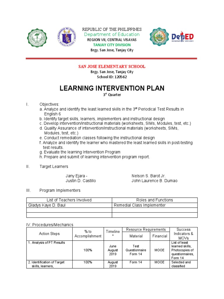 Learning Intervention Plan Sample | PDF | Instructional Design | Pedagogy