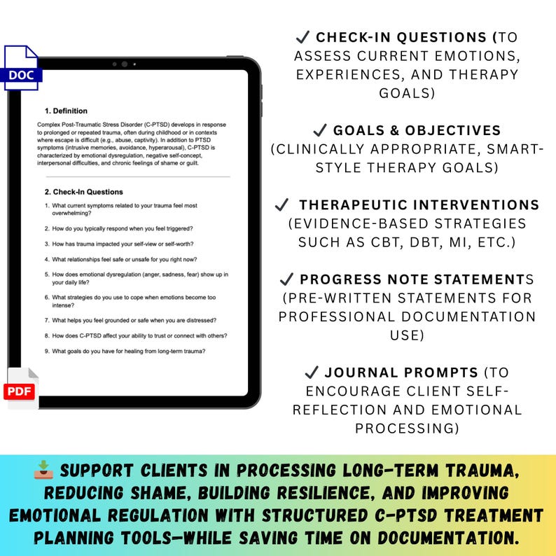 Complex PTSD Treatment Planner for Therapists | Trauma Recovery Goals ...