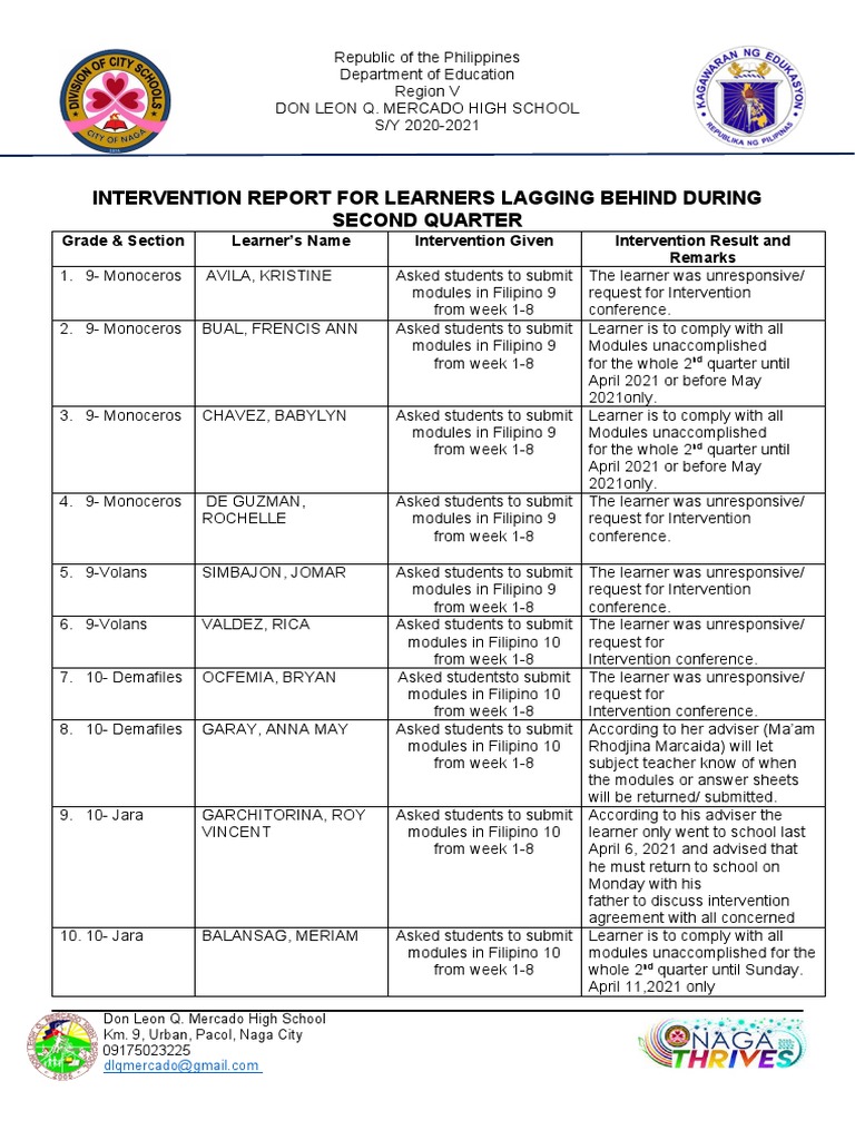 Intervention Report For Learners Lagging Behind During Second Quarter | PDF