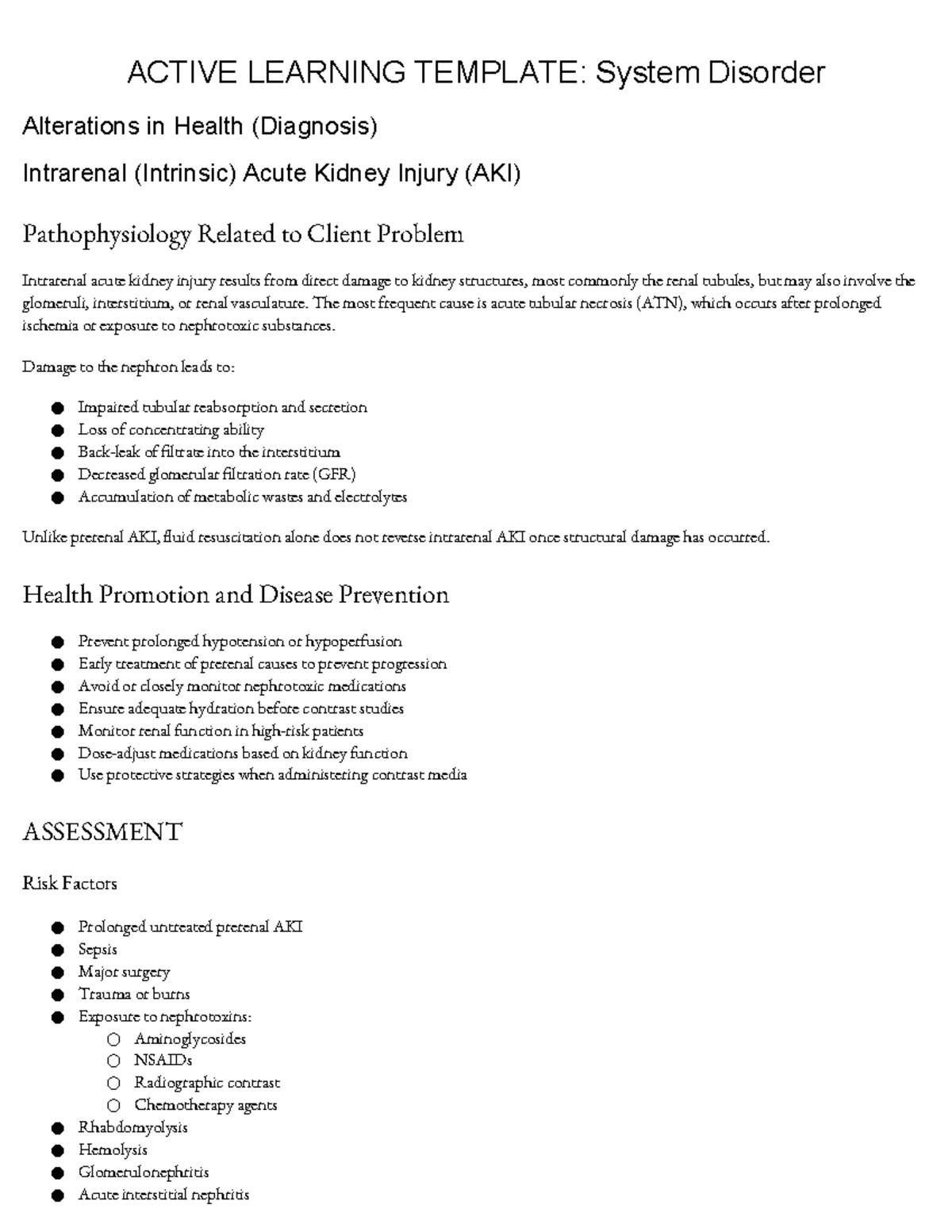 Active Learning Template: Prerenal Acute Kidney Injury (AKI) Overview ...