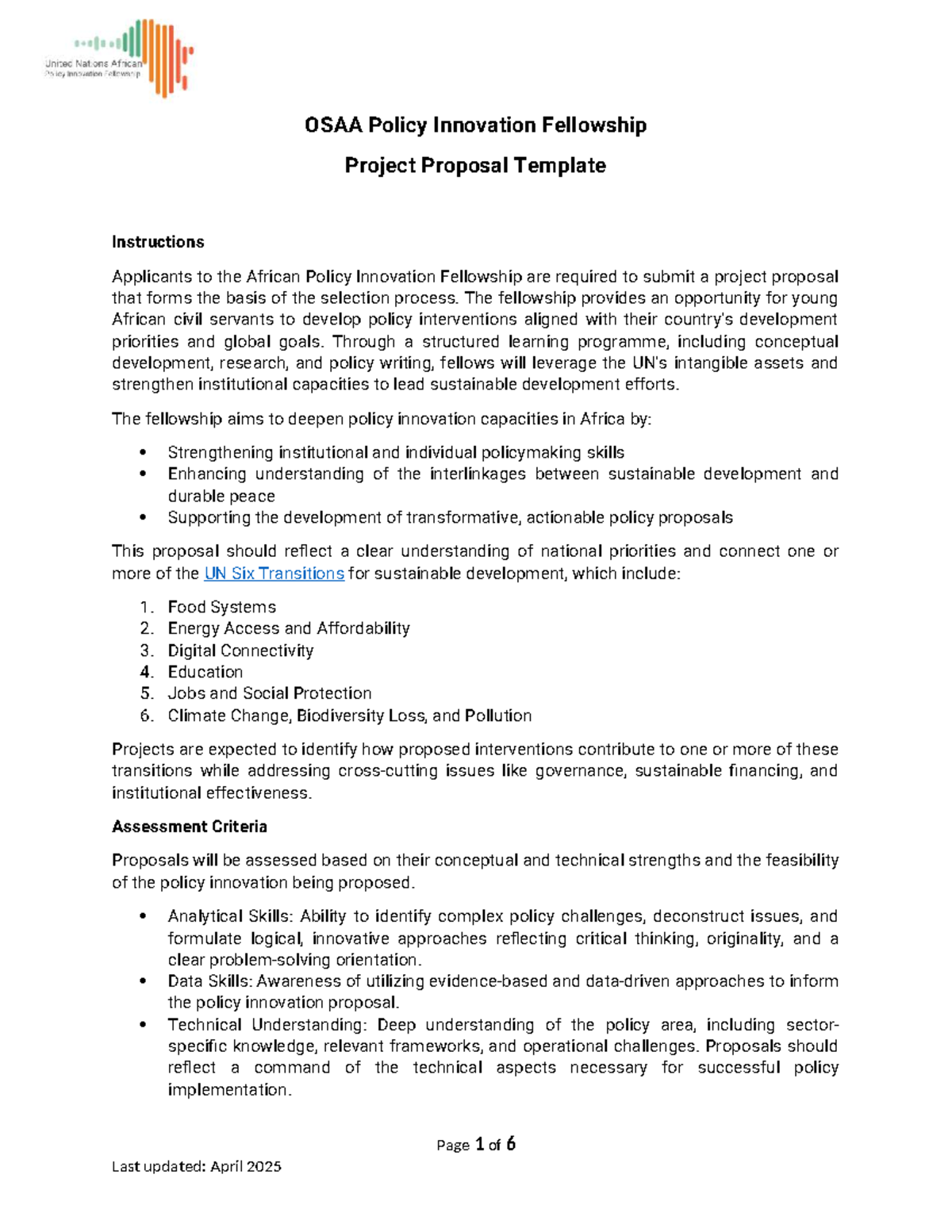 OSAA Fellowship Project Proposal Template - April 2025 - Studocu
