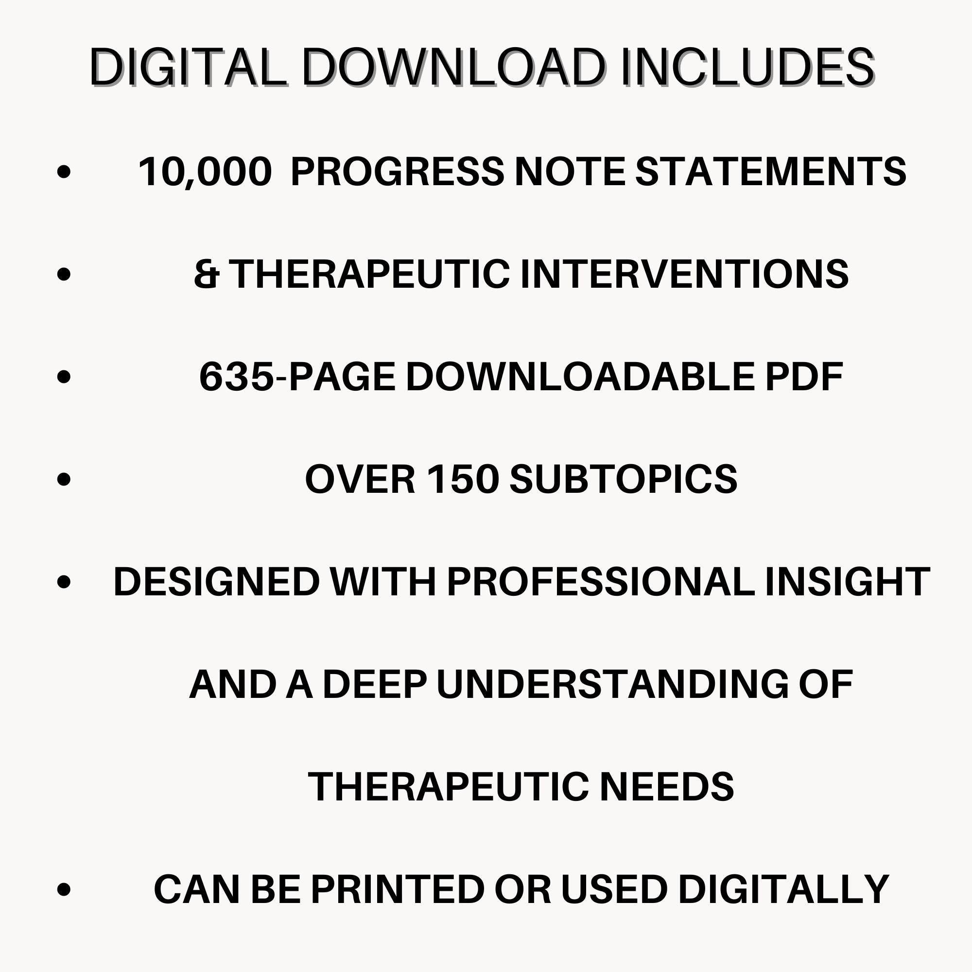 Therapy Progress Note Statements | Therapeutic Interventions Resource ...