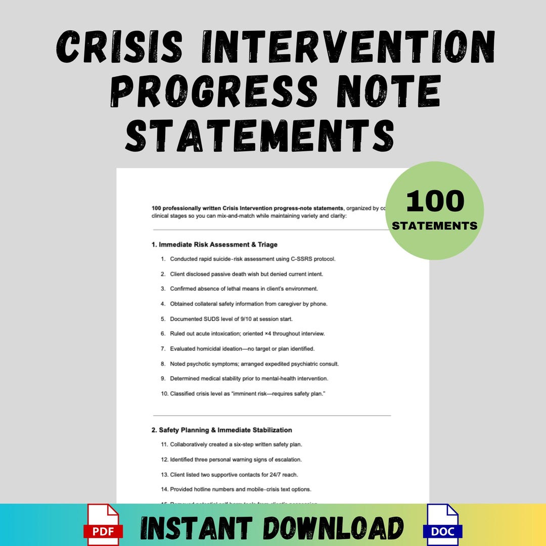 Crisis Intervention Progress Notes Statements Counselors Therapists ...