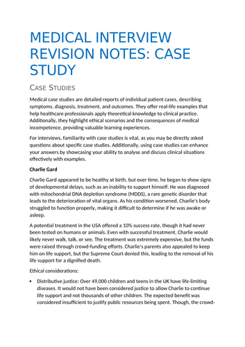 Case Studies: Medicine Interview Notes | Teaching Resources