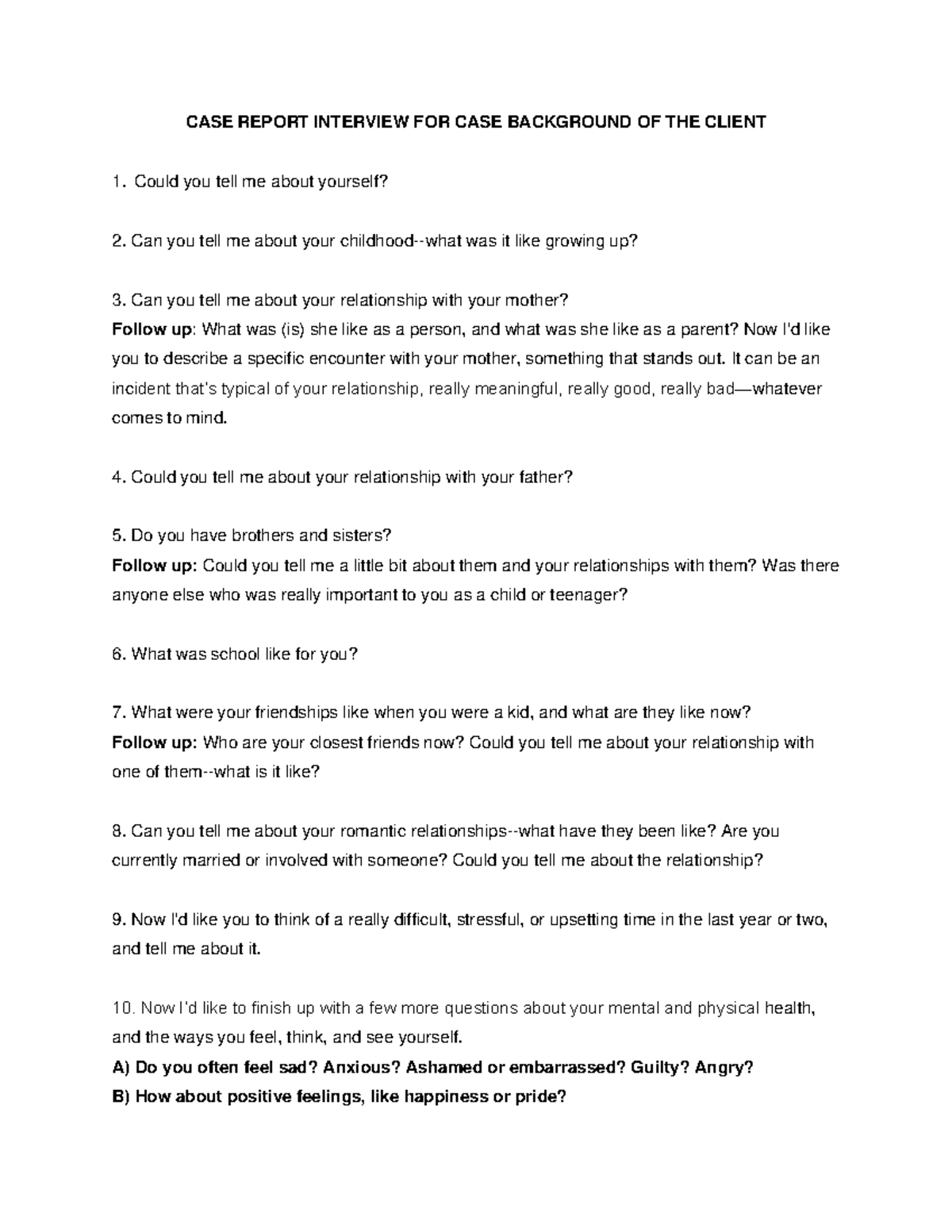 CASE- Report- Interview - CASE REPORT INTERVIEW FOR CASE BACKGROUND OF ...