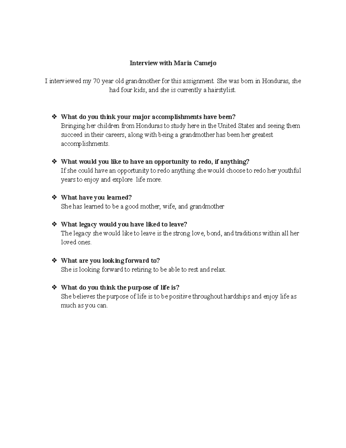 Assignment 3 DEP 2000 - Interview ex - Alexa Guifarro Interview with ...