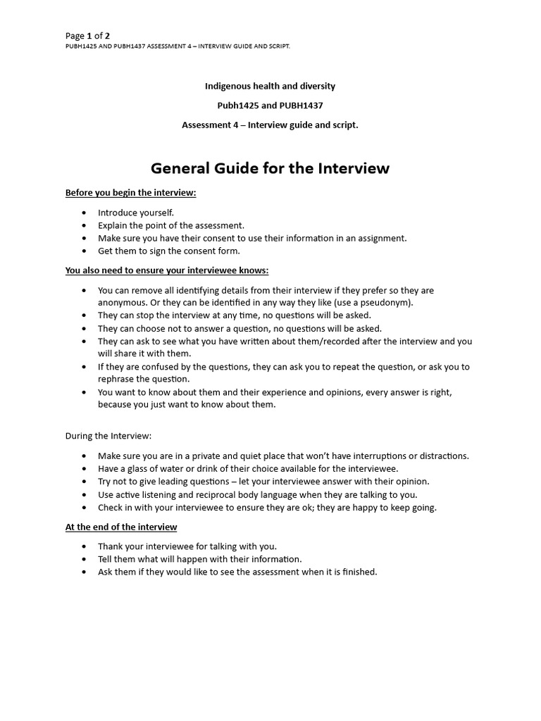 Interview Guide and Script Assessment 4 Pubh1425 1437 | PDF