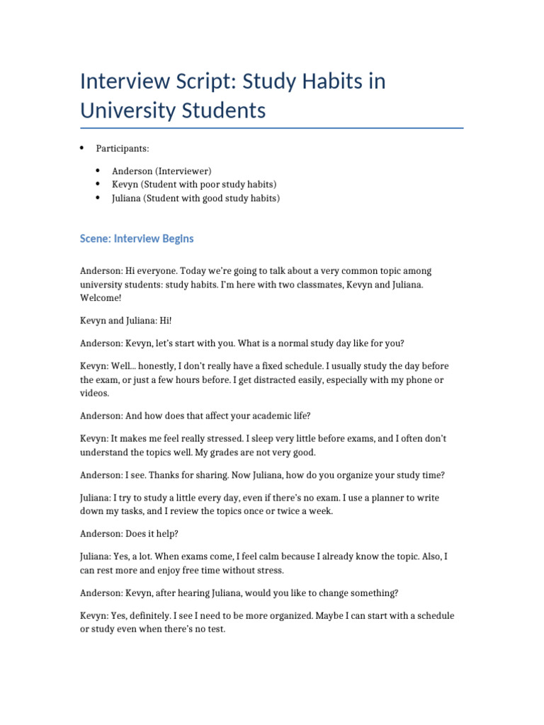 Sample Script Based On Our Interview | PDF | Résumé | Learning