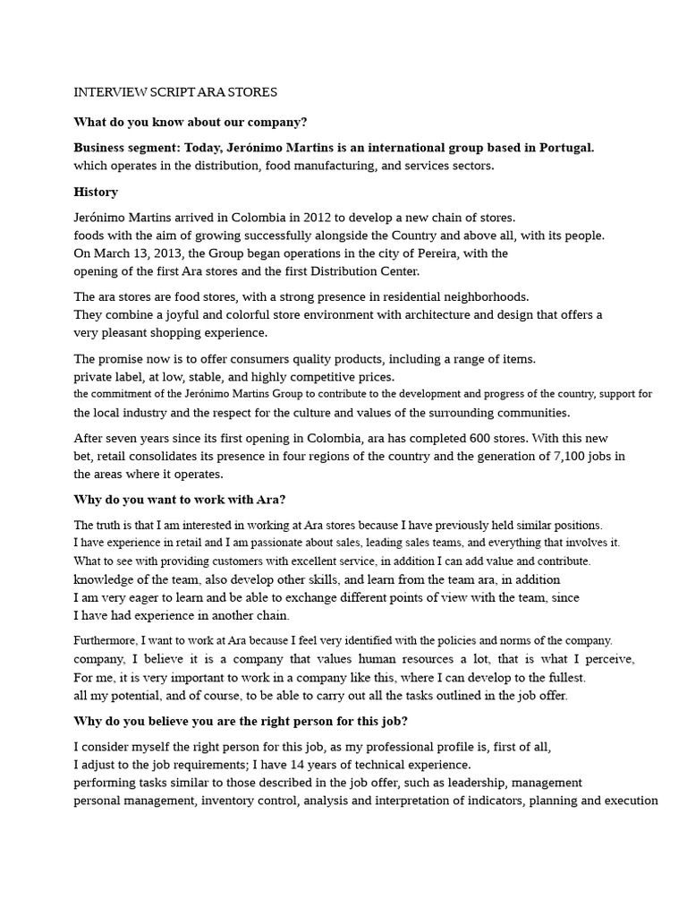 Interview Script For Ara Stores | PDF | Retail | Logistics
