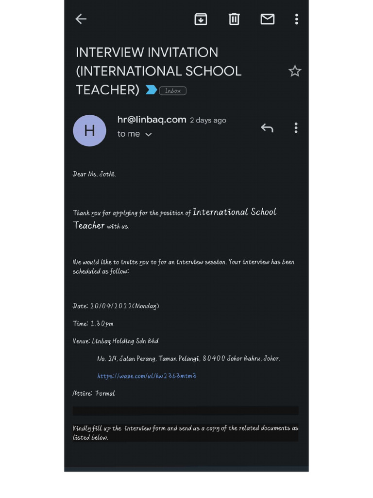 A man received an job interview invitation by an email, invitation to ...