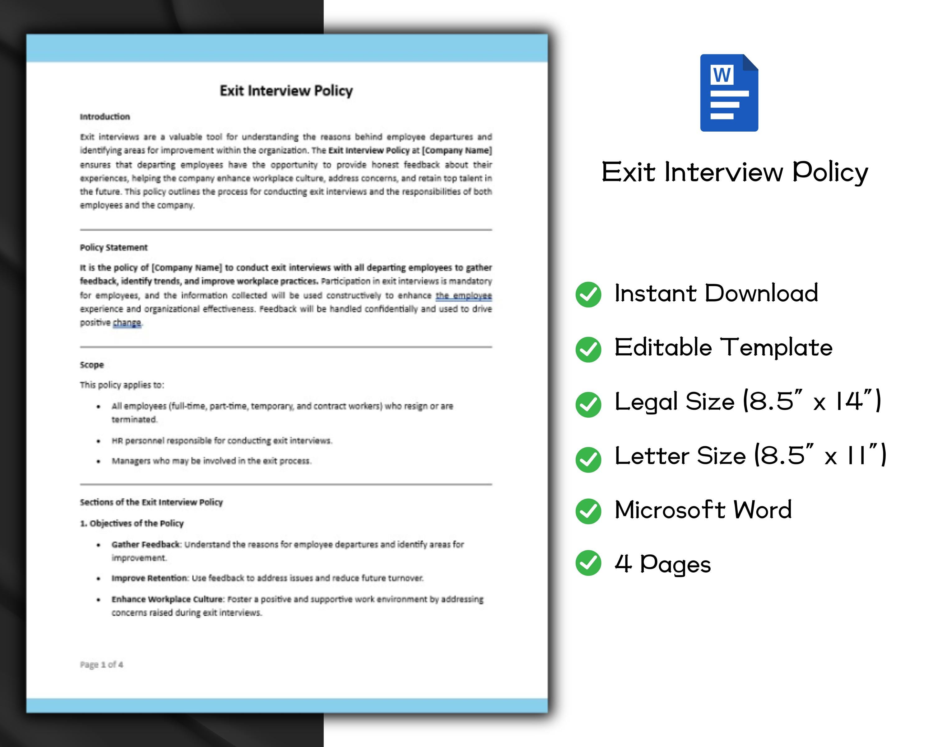 Exit Interview Policy Editable Template | Human Resource Policy ...