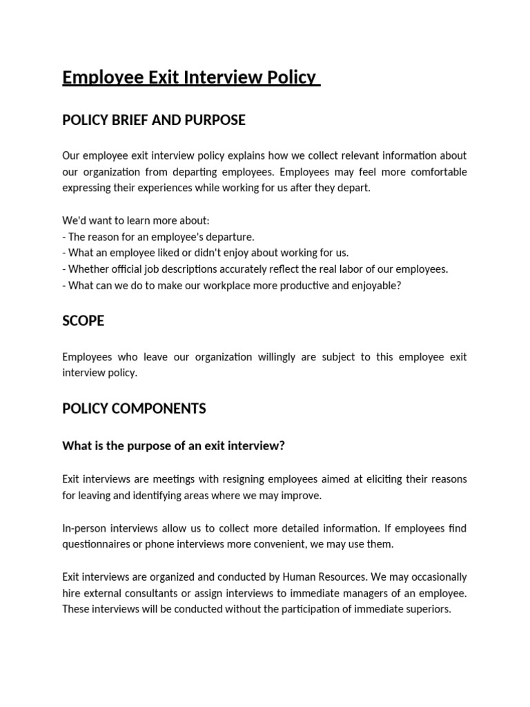 Sample Exit Interview Policy/procedure, #1 | Download Free PDF | Human ...