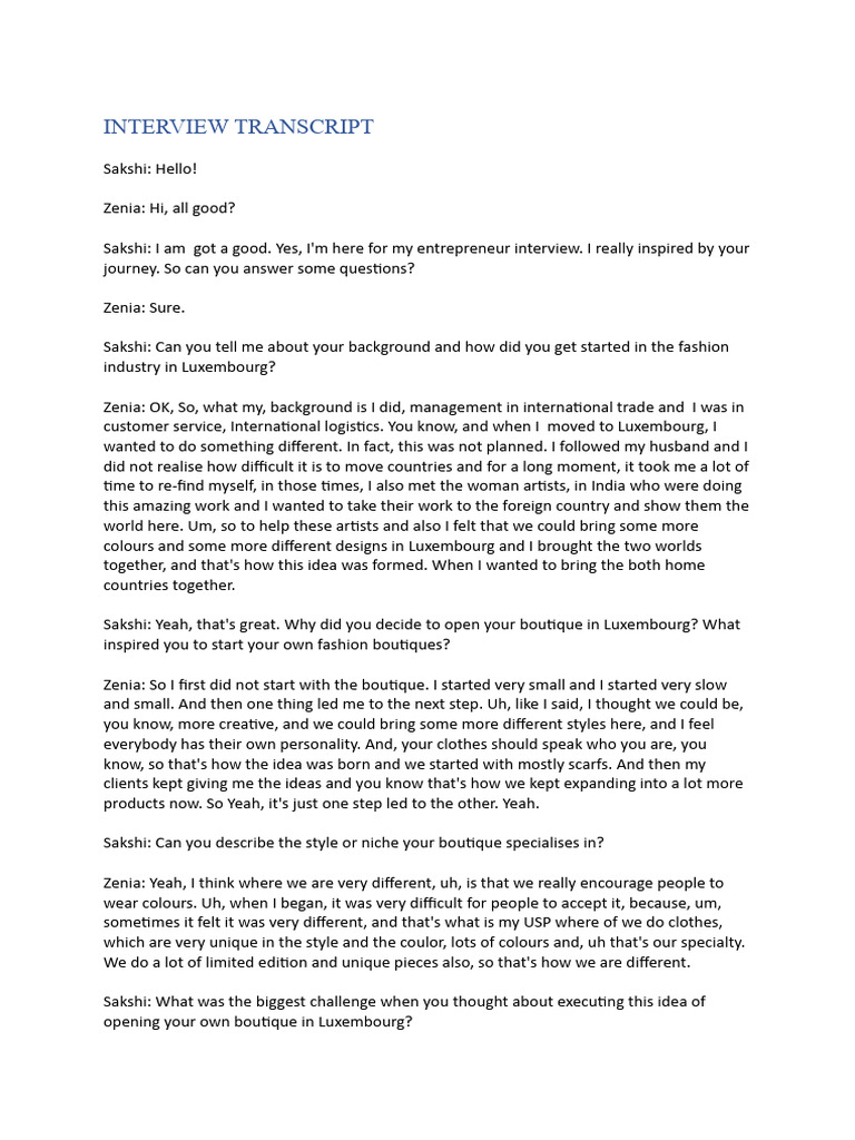Interview Transcript - INTERVIEW TRANSCRIPT Interviewer: Student ...