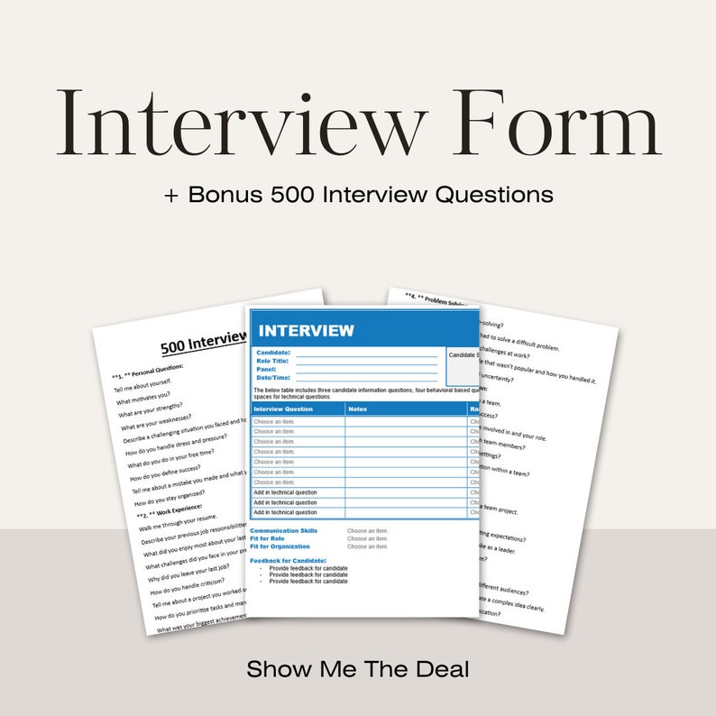 Interview Questions Template HR Bundle Interview Question - Etsy