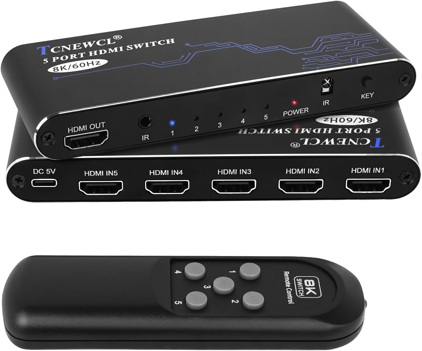 Amazon.com: 8K HDMI Switch 5 in 1 Out, HDMI 2.1 Switch 5 Port with IR ...