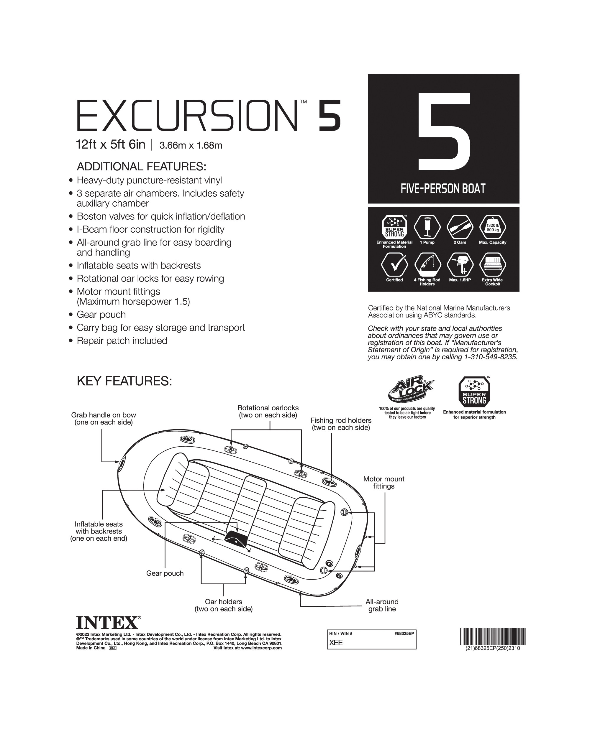 Intex Owners Manual Inflatable Boat ISO 6185 Boat Design Category D ...