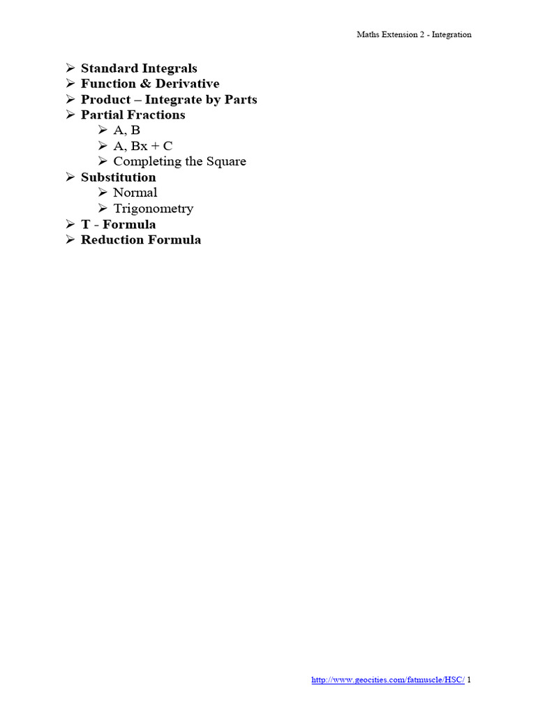 Integration notes maths ext 2 - year 12 - Integra琀椀on Standard ...