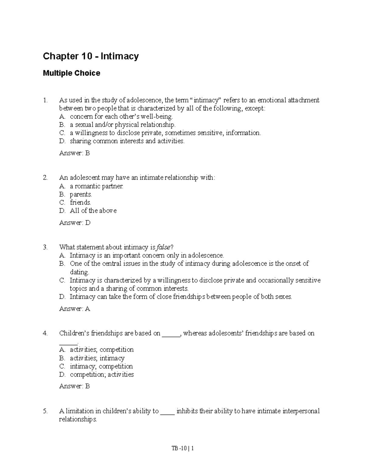 Chapter 10: Intimacy Insights - HDFS 3700 Practice Test Summary - Studocu