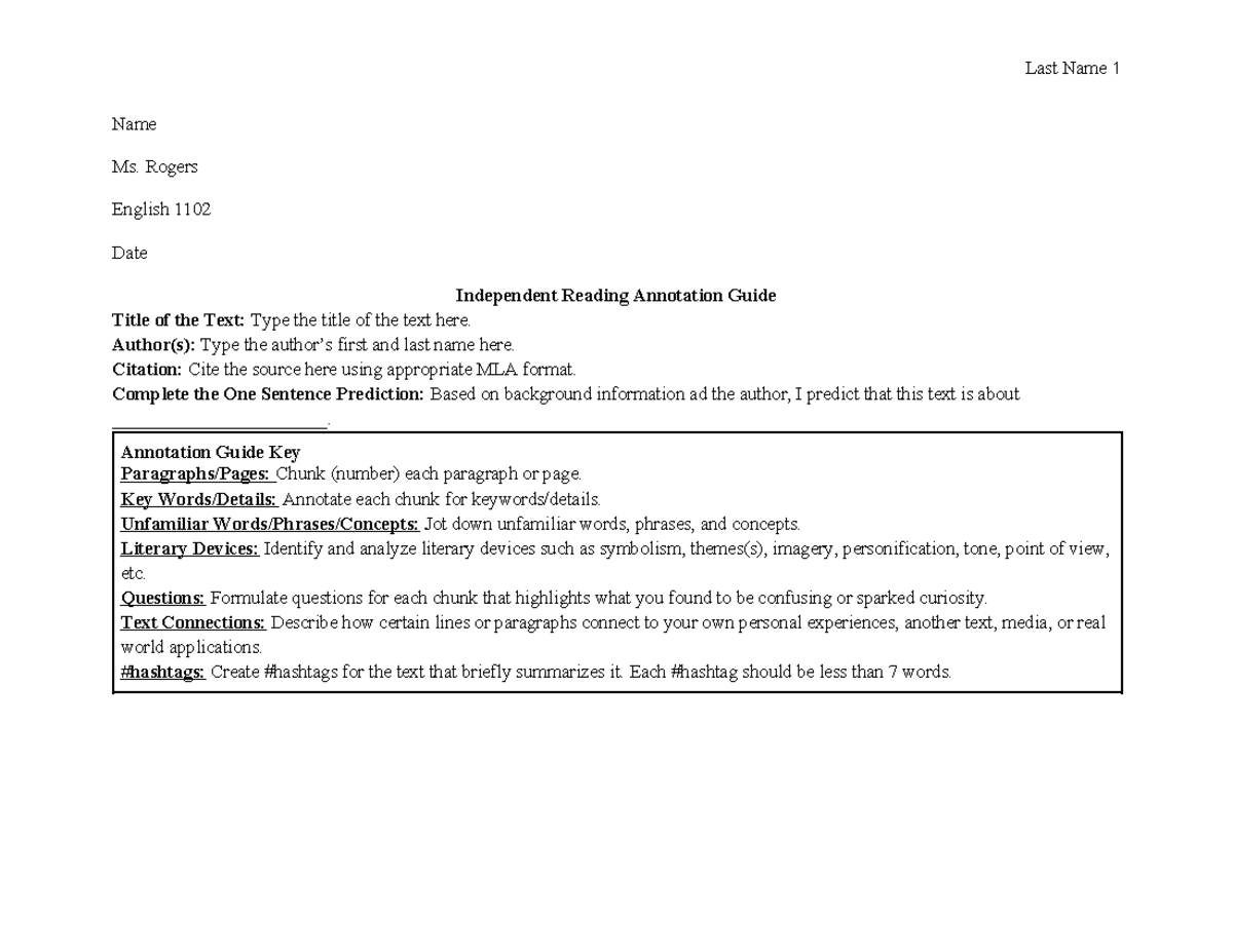 English 1102 Independent Reading Annotation Guide and Template - Studocu