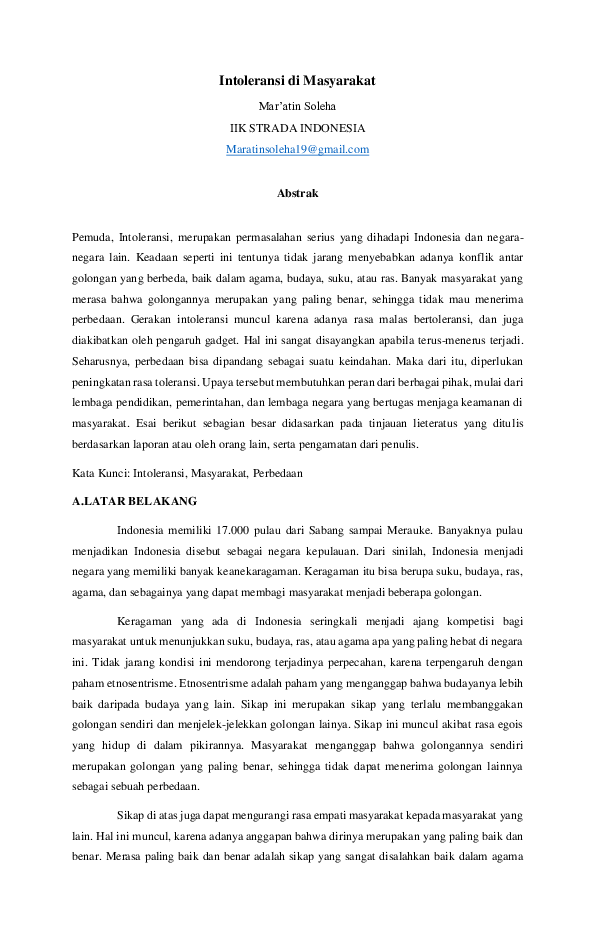 (DOC) INTOLERANSI DI MASYARAKAT