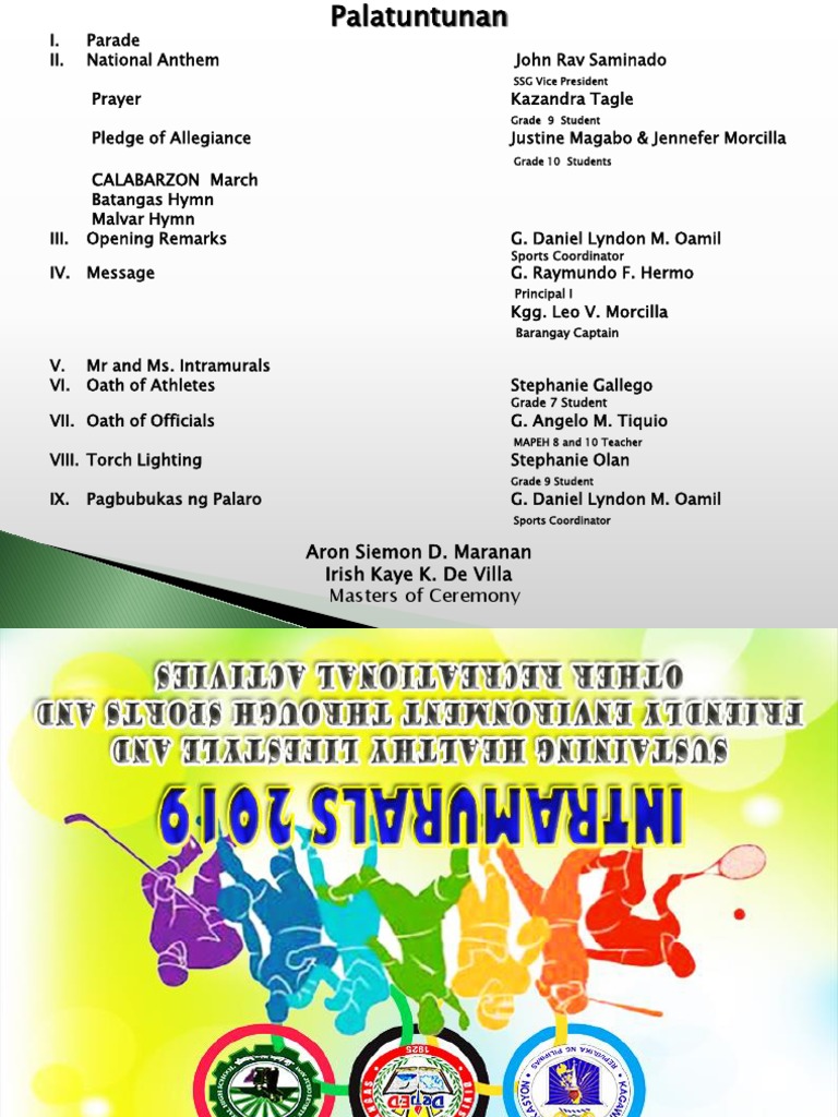Intramurals 2023 LLA - Script for Intrams - INTRAMURALS 2023 PROGRAMME ...