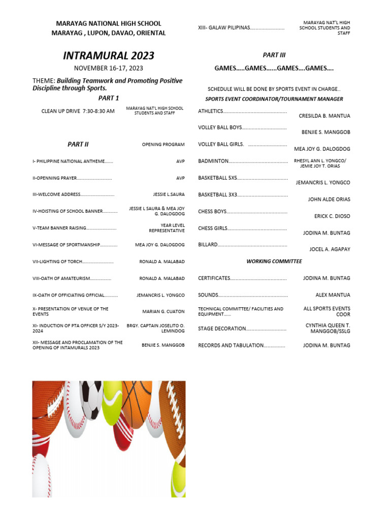 Intramurals 2023 Program | PDF | Games & Activities