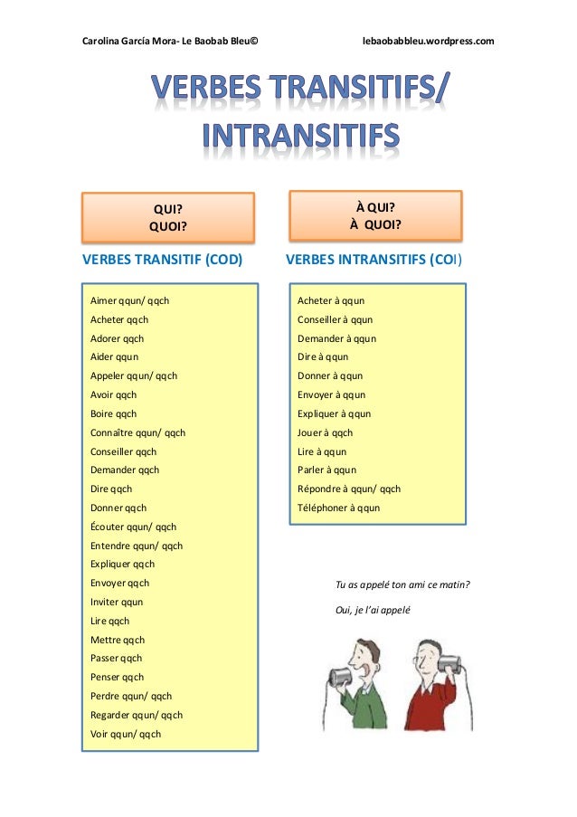 Verbes Transitifs Indirects , Les verbes transitifs et les verbes ...