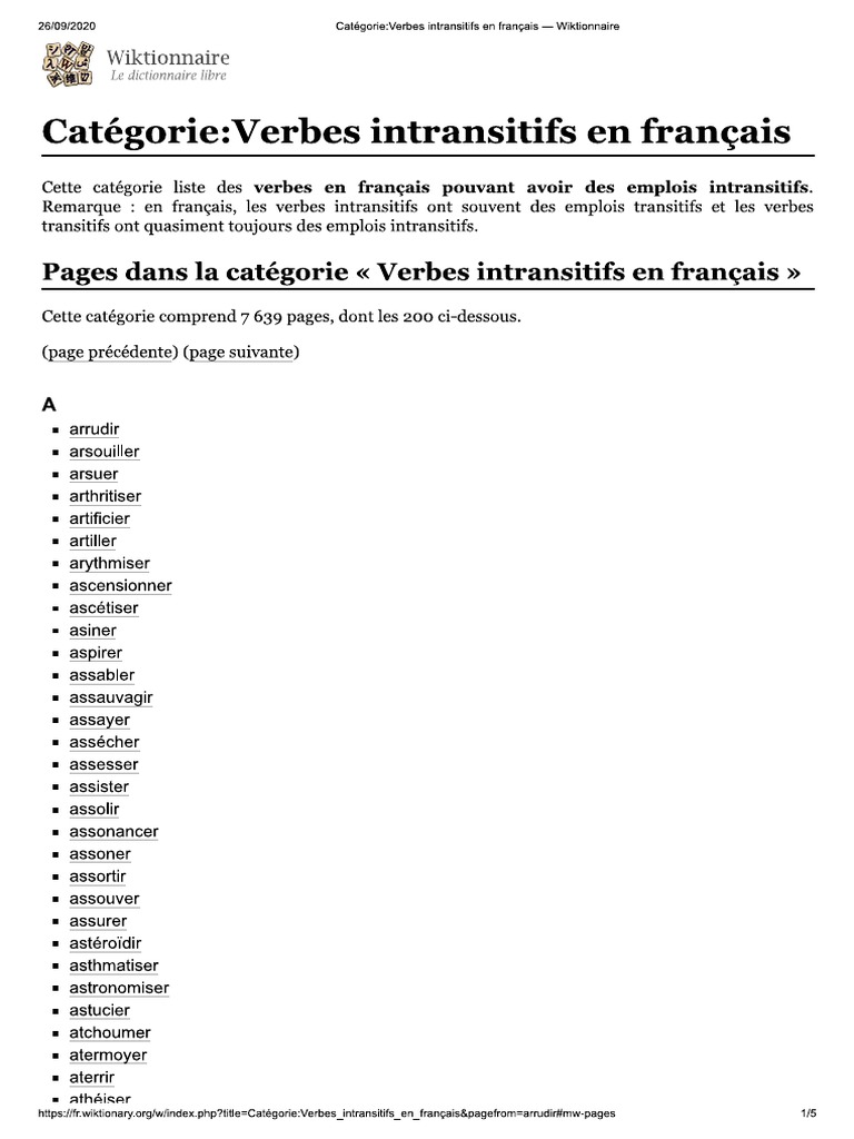 Catégorie - Verbes Intransitifs en Français - Wiktionnaire2 | PDF