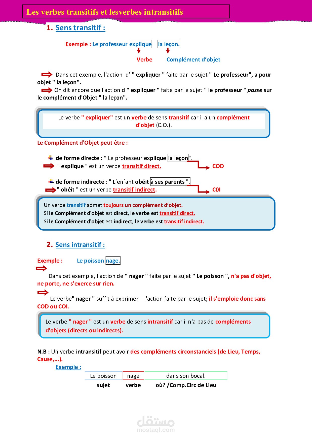 Verbes transitifs et intransitifs : Leçon en français facile pour ...