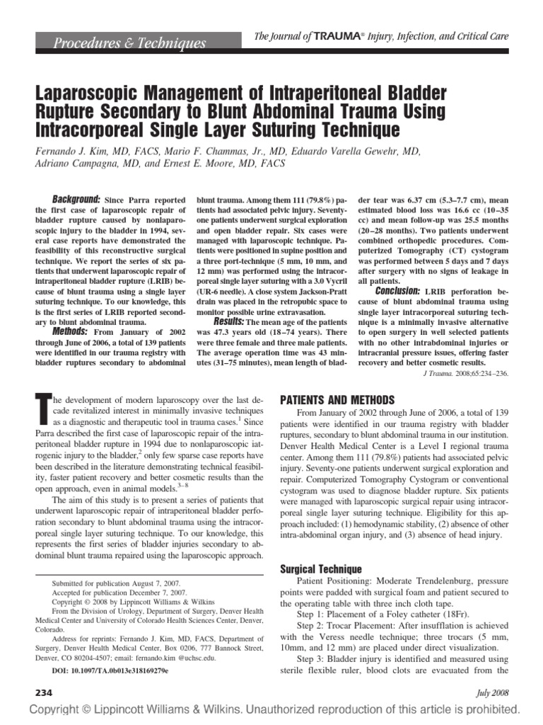 Laparoscopic Management of Intraperitoneal Bladder Rupture Secondary To ...